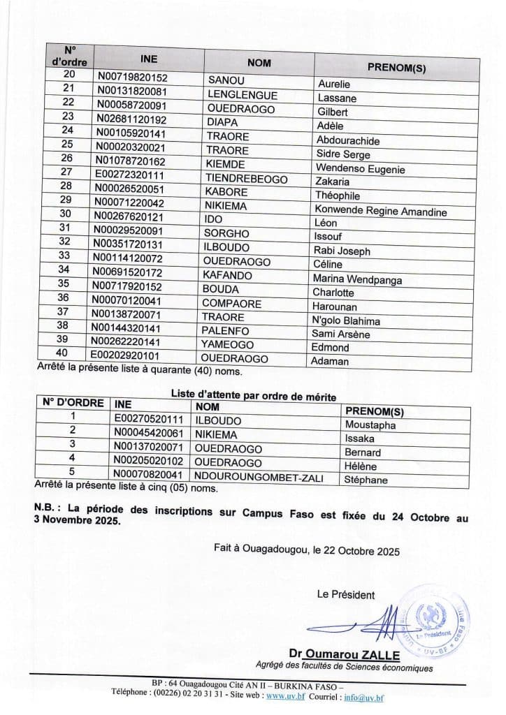 Sous réserve d’un contrôle approfondi, les candidats dont les noms suivent sont déclarés admis, par ordre de mérite à l’issue de l’instruction des dossiers de candidature pour une inscription en première année de Master Sciences de l’Éducation et de la Formation, mention Technologie pour l’Éducation et la Formation (MSEF-TEF), au titre de l’année académique 2025-2026.